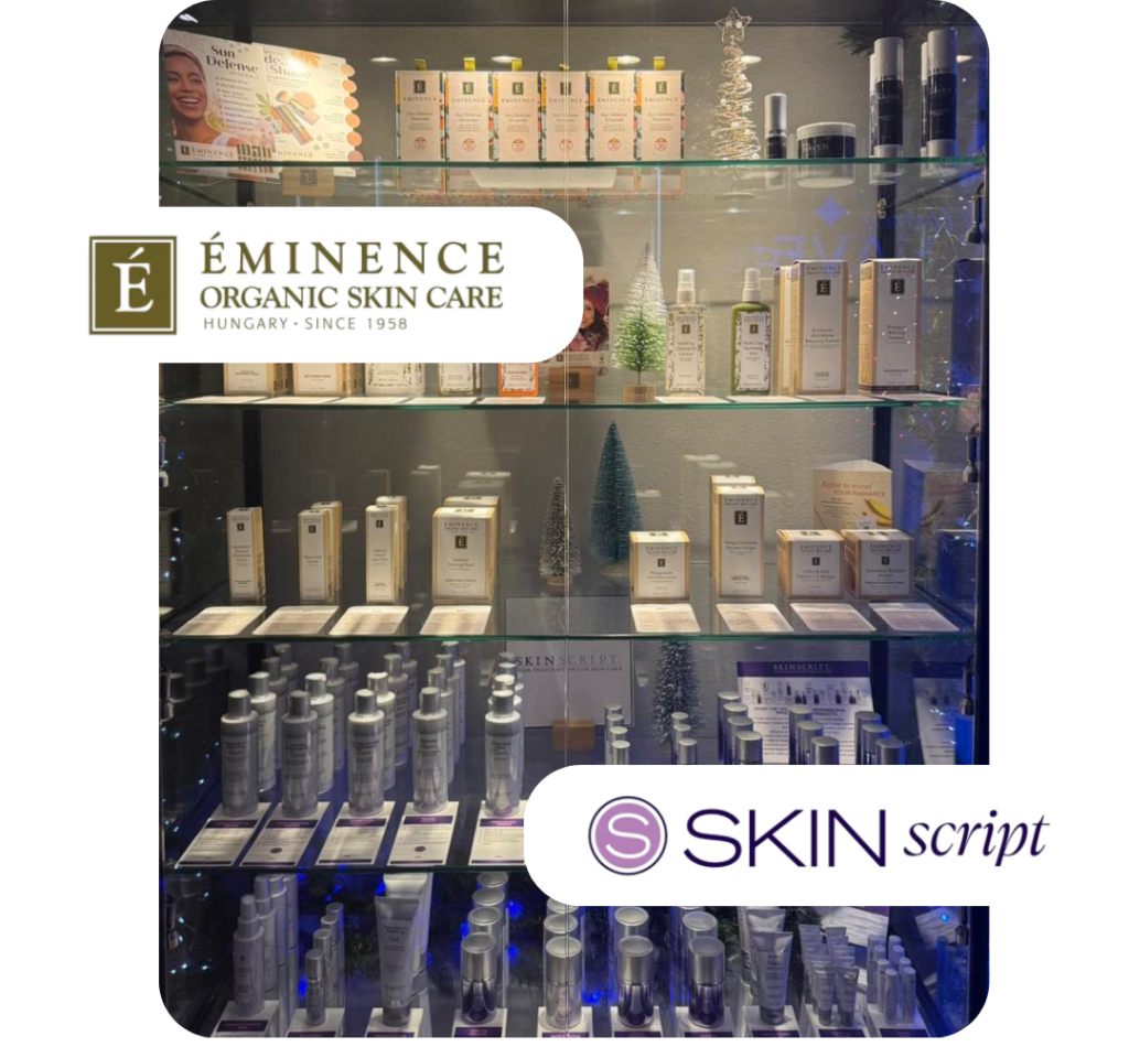 We’ve hand-selected two of the best lines in the business — Skin Script and Eminence Organics — because we believe what you put on your skin matters. Whether you’re targeting specific concerns or embracing a cleaner, more natural routine, we carry professional-grade products that deliver real results. No guesswork, no overwhelm — just great skincare, personally recommended by our team.